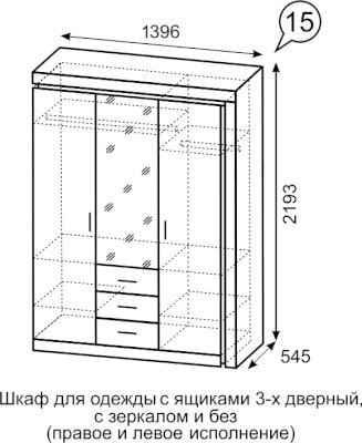 Шкаф для одежды с ящиками 3-х дверный без зеркал №15