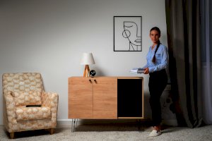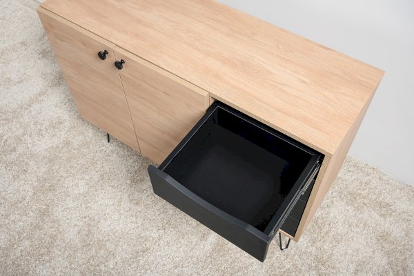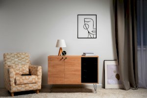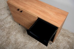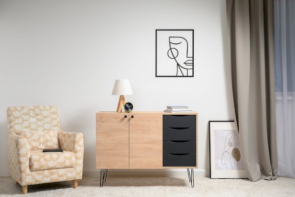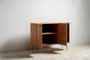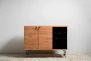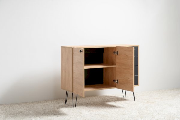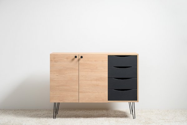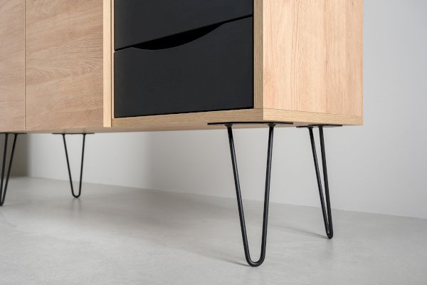 Лаконичный и стильный комод Брюс на высоких металлических опорах будет уместен в интерьере современной гостиной, спальни, прихожей.