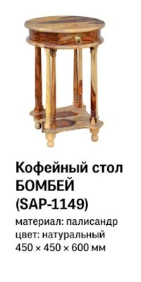 Кофейный стол из коллекции BOMBAY – это не просто функциональное решение, но и яркая деталь, способная подчеркнуть индивидуальность вашего интерьера. Его круглая форма и элегантный дизайн помогут создать гармоничное пространство и невероятный уют, в которые захочется вернуться еще не раз. Оригинальные резные ножки ручной работы, классическая форма с нижней полочкой и винтажная фурнитура из патинированной латуни подчеркивают красоту и благородство изделия. Небольшой выдвижной ящик станет удобным местом хранения различных мелочей. Столик можно использовать как по прямому назначению, так и в качестве дополнительной сервировочной поверхности. Натуральная древесина палисандра, обработанная прозрачным лаком, зачаровывает благородством рисунка, изысканностью материала и красотой. Модель долговечна, прочна, надежна и не требует специального ухода. Столик отлично гармонирует с мебелью из коллекции BOMBAY, поставляется в собранном виде.
