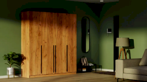 Четырехстворчатый шкаф имеет универсальный вариант для хранения: на боковых полках можно разместить нижнее белье, одежду, постельное белье, а на горизонтальной штанге развесить одежду на вешалках. Сочетание платяного и бельевого отсеков позволяет использовать шкаф в качестве комбинированного.