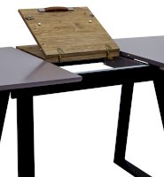 Дополнительная вкладка стола выполнена из МДФ с бумажным шпоном цвета беленого дуба. На вкладке предусмотрена петля для комфортного открытия стола одной рукой.