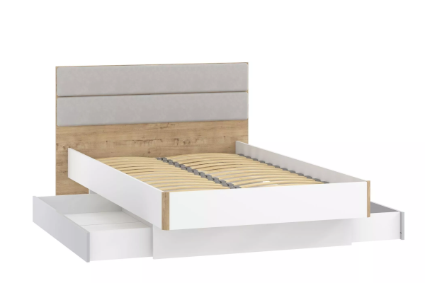 Благодаря приятной на ощупь обивке мягкого изголовья читать перед сном или смотреть фильм будет ещё удобнее. Ортопедическое основание кровати станет огромным преимуществом. Натуральный материал ламелей не вызывает аллергии и безопасен для здоровья. Основание кровати оснащено противоударными профилями, которые обеспечивают безопасную эксплуатацию. Для данного модуля также предусмотрены ящики для хранения НМ 041.21Х, которые приобретаются отдельно.