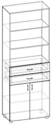 Стеллаж 2 двери и 2 ящика Лидер СТ.028.800-01 (Баронс)