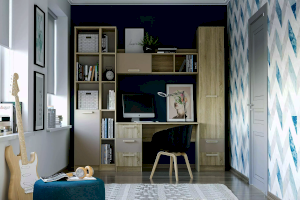 Письменный стол поможет обустроить комфортный учебный уголок в детской. На рабочей поверхности модуля достаточно места для размещения не только письменных принадлежностей, но и ноутбука. Закругленные углы столешницы делают эксплуатацию модуля безопасной для ребенка. По окончании занятий ребенок сможет убрать книги и тетради в выдвижные ящики для поддержания порядка на рабочем месте.