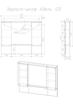 Зеркало-шкаф Adel 120 (Veneciana)