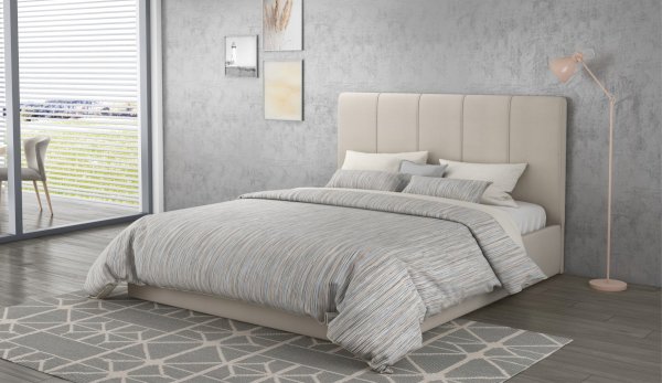 Современная удобная и эргономичная кровать с высоким мягким изголовьем, декорированным вертикальными кантами, создает в спальне комфортную и уютную атмосферу. Практичная мягкая ворсистая поверхность обивки ярких цветов, вызывающая приятные тактильные ощущения, идеально точно повторяет силуэт конструкции кровати, украшает и облагораживает спальню. Вместительный бельевой ящик увеличит полезную площадь спальни и станет дополнительным местом для хранения необходимых вещей.